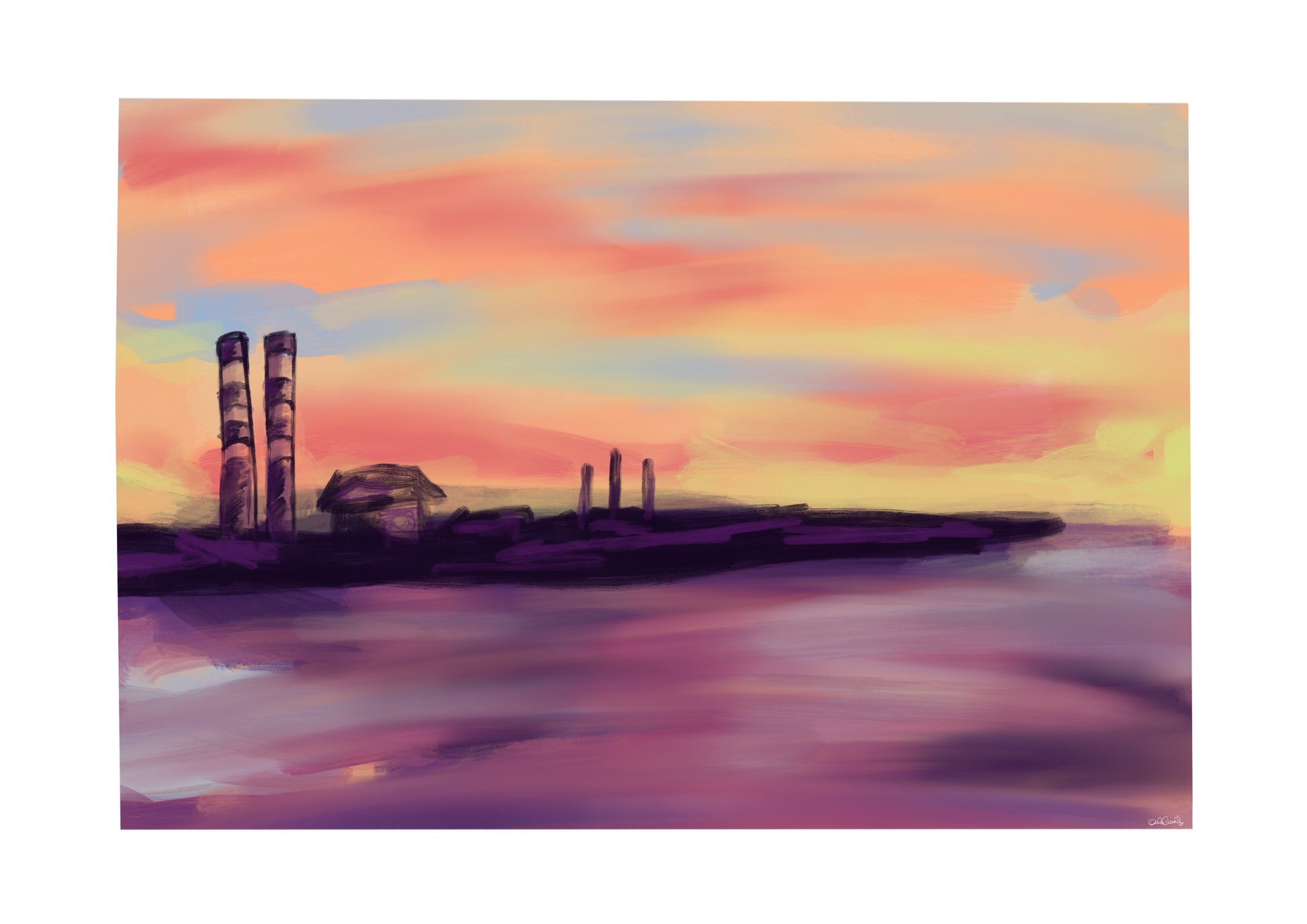 Digital Painting of the famous Poolbeg Chimneys in Dublin